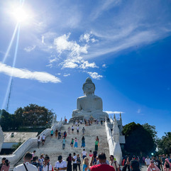So Ashley and I got in our Grab and made our way up to the statue. Once up at the Buddha we were immediately taking in the amazing view of Phuket and the ocean below. We walked up the 94 steps to the main attraction, took some pictures and walked around admiring all of the surrounding statues. It really is cool to take a minute and look up at the Big Buddha and the intricacies that went into crafting it. On our way down we walked by a couple monkeys that certainly weren't scared to get close.