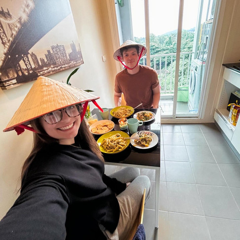A few days ago was Thanksgiving. Bryce made a delicious pesto penne with chicken and a side of veggies and cheesy garlic bread. We ate with our paddy hats on because it just felt right. When in Asia… am I right? For dessert we each enjoyed a slice of Dairy Queen Oreo and Kit Kat ice cream cake we bought from the mall.