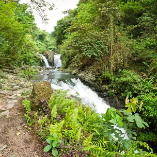 Moving right along to Kembar waterfall, which translates to twins in Indonesian. Named appropriately because there are two waterfalls side by side with a jump point of 10 meters (32 feet) in between.
